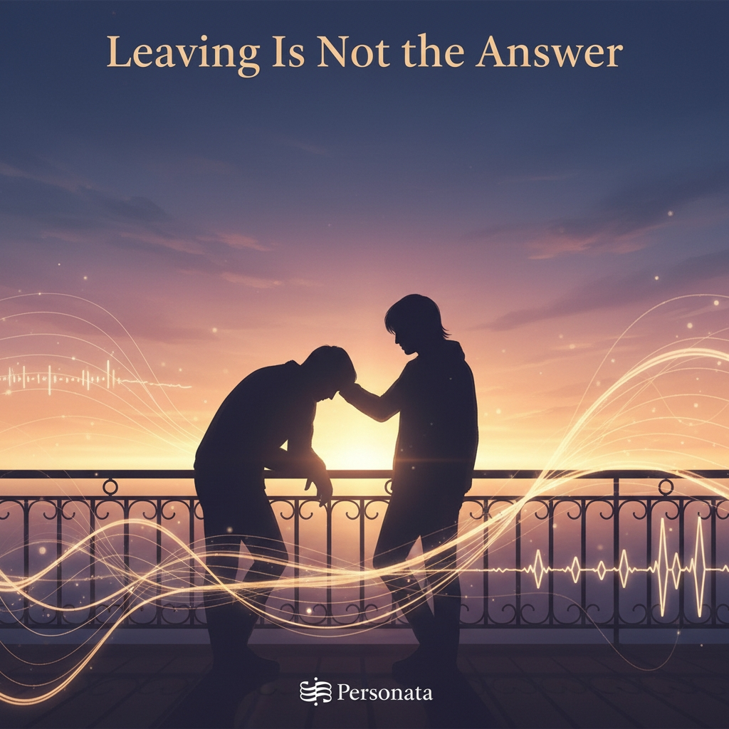 “Leaving Is Not the Answer” is a modern, intimate ballad for anyone who has ever stood on the edge—or loved someone who has. The song has been produced in three format; Adult Contemporary, Country, and Top 40, and moves like a late–night conversation on a balcony: honest, fragile, and full of quiet hope.